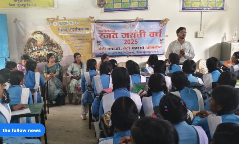 सूरजपुर। डुमरिया के शासकीय उ.मा. विद्यालय में बेटी बचाओ बेटी पढ़ाओ अभियान अंतर्गत जागरूकता कार्यक्रम कलेक्टर एस. जयवर्धन के आदेशानुसार तथा जिला कार्यक्रम अधिकारी शुभम बंसल के मार्गदर्शन से सम्पन्न हुआ।जिसमें छात्राओं को बालिका सशक्तिकरण माह अंतर्गत मेंटल हेल्थ से संबंधित समस्याओं के बारे में अवगत कराया गया।कार्यक्रम का आयोजन महिला वं बाल विकास विभाग,महिला सशक्तिकरण हब मिशन शक्ति के अंतर्गत जिला मिशन समन्वयक श्रीमती शारदा सिंह के नेतृत्व में किया गया है। जिसमे कन्या भ्रूण हत्या निषेध अधिनियम, घरेलू हिंसा अधिनियम, सखी वन स्टॉप सेंटर, कार्य स्थल पर महिलाओ का लैगिंग उत्पीडन अधिनियम 2013 वं महिला हेल्प लाइन नंबर 181, 1098, 112 की जानकारी दी गई। मेंटल हेल्थ के विशेष विषय द्वारा जागरूकता कार्यक्रम हेतु आयोजन में जागरूक करने के लिए यूनिसेफ एग्रीकॉन फाउंडेशन से ज़िला समन्वयक हितेश निर्मलकर, और ब्लॉक समन्वयक अंबुज मिश्रा,स्कूल के 209 छात्र एवं छात्राए, प्रिंसिपल और अन्य शिक्षणगण मौजूद रहे विद्यालय के प्राचार्य वं सभी शिक्षको के सहयोग से सत्र का सफल आयोजन किया गया। जेण्डर विशेषज्ञ पूनम राजवाडे वं सलोमी कुजूर द्वारा बालिका सशक्तिकरण माह कार्यक्रम का आयोजन अत्यधिक उत्साह और अनुशासन के साथ सम्पन्न कराया गया।