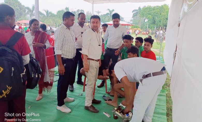 नगर पालिका परिषद सूरजपुर में खेल का आयोजन किया जा रहा है खेल खेलते समय बच्चों को चोट आ गया था और उनको चिकित्सीय सुविधा देने हेतु डॉक्टर उपलब्ध नहीं थे जैसे ही हड़ताल में बैठे डॉक्टरों को पता चला कि खेल के दौरान बच्चों को चोट लगा है तुरंत छत्तीसगढ़ स्वास्थ्य फेडरेशन के जिला संयोजक संदीप गुप्ता व उनकी टीम में से डॉक्टर विकास गुप्ता डॉक्टर सुमित पटेल स्टाफ नर्स विनोद रवि श्रीमती एनी मंजू बिंदेश गुप्ता रवि सिंह तत्काल खेल मैदान पर पहुंचे और बच्चों को चिकित्सीय सुविधा देकर उन्हें स्वास्थ्य सुविधा दिया गया लिए नगर पालिका परिषद सूरजपुर एवं राजीव युवा मितान क्लब के मेंबरो द्वारा आभार प्रकट किया गया