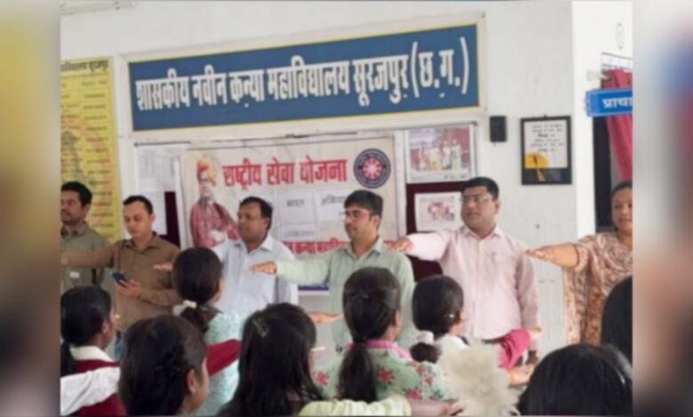 सूरजपुर। शासकीय नवीन कन्या महाविद्यालय में प्राचार्य बृजलाल साहू के निर्देशन में नशा मुक्त भारत अभियान के 5वीं वर्षगांठ के उपलक्ष्य पर विभिन्न कार्यक्रमों का आयोजन किया गया। इस अवसर पर महाविद्यालय के सहायक प्राध्यापक संदीप कुमार सोनी ने नशा को नाश का कारण बताते हुए नशा मुक्त समाज के निर्माण के लिए छात्राओं से अपील की। इस कड़ी में डॉ. धनञ्जय पांडेय ने नशा के कारण मानव स्वास्थ्य , परिवार तथा समाज पर पड़ने वाले दुष्प्रभावों के बारे में छात्राओं को अवगत कराया तथा उज्ज्वल भविष्य के लिए नशा मुक्त समाज को जरुरी बताया। पुनीत गुप्ता सहायक प्राध्यापक द्वारा उपस्थित समस्त छात्राओं तथा महाविद्यालय के समस्त शैक्षणिक व गैर -शैक्षणिक स्टॉफ को नशा मुक्त समाज के लिए शपथ दिलाया गया, साथ ही साथ स्लोगन लेखन व पोस्टर मेकिंग प्रतियोगिता का आयोजन किया गया जिसमें छात्राओं ने उत्साहपूर्वक भाग लिया। इस कार्यक्रम का आयोजन रा.से.यो. कार्यक्रम अधिकारी पूजांजली भगत द्वारा किया गया। इस कार्यक्रम में महाविद्यालय के प्राध्यापकगण दिग्विजय सिंह ,डॉ. विनोद कुमार साहू ,रोहित कुमार सेठ तथा सजीत खलखो ,तमलेश्वर राजवाड़े भी उपस्थित रहे।