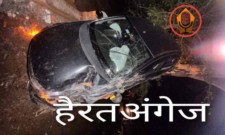 तेज रफ्तार कार पेड़ पर लटकी उड़े परखच्चे