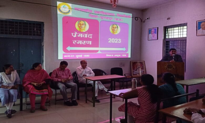 सूरजपुर/ शासकीय महाविद्यालय सिलफिली में महान साहित्यकार प्रेमचंद की स्मृति में प्रेमचंद स्मरण कार्यक्रम का आयोजन किया गया। कार्यक्रम का प्रारंभ प्राचार्य डॉ. रामकुमार मिश्र तथा वरिष्ठ प्राध्यापक बृज किशोर त्रिपाठी के साथ-साथ अन्य प्राध्यापकों के द्वारा माँ सरस्वती के छायाचित्र पर माल्यार्पण तथा दीप प्रज्ज्वलन के द्वारा हुआ।कार्यक्रम के संचालक सहायक प्राध्यापक अजय कुमार तिवारी ने प्रेमचंद का सामान्य परिचय देते हुए उनके जन्म, जीवन तथा उनके साहित्य की चर्चा की। उन्होंने बताया कि प्रेमचंद महान साहित्यकार थे। प्रेमचंद ने सर्वप्रथम कहानी विधा को यथार्थ के धरातल पर प्रस्तुत किया। उससे पूर्व कहानी जादू,टोने, तिलस्मी, ऐयारी इत्यादि से संबंधित लिखी जाती थी, जो सिर्फ मनोरंजन के लिए हुआ करता थी। प्रेमचंद ने समाज के हर तरह के व्यक्ति को अपनी कहानियों तथा उपन्यासों में स्थान दिया। उन्होंने 300 से अधिक कहानियों, 15 उपन्यासों के अतिरिक्त समाज तथा राजनीति से जुड़े अनेक विषयों पर लेख लिखकर हिंदी साहित्य को समृद्ध किया। प्रेमचंद ने सबसे पहले समाज के जीवन को, समाज की वास्तविक विसंगतियों रंगभेद, छुआछूत, बाल विवाह, सूदखोरी-महाजनी प्रथा से उत्पन्न समस्या को स्थान देते हुए समाज के सभी वर्गों के व्यक्तियों को अपनी कहानियों तथा उपन्यासों का पात्र बनाया। उन्होंने समाज की वास्तविक स्थिति को लोगों के समक्ष प्रस्तुत किया। इसके पश्चात प्रेमचंद के जीवन पर आधारित राज्यसभा टीवी द्वारा निर्मित एक डॉक्यूमेंट्री प्रोजेक्टर के द्वारा प्रस्तुत किया गया। जिससे विद्यार्थियों को प्रेमचंद के जीवन तथा उनके कृतित्व की जानकारी मिली तथा उन्होंने प्रेमचंद के निवास स्थल जो अब शासकीय संग्रहालय बन चुका है, को भी दिखाया गया।मुख्य वक्ता तथा महाविद्यालय के प्राचार्य डॉ. राम कुमार मिश्र ने बताया कि प्रेमचंद ने अपने जीवन के प्रत्येक क्षण का उपयोग किया। उन्होंने कहानी उपन्यास लेखन के अतिरिक्त पत्र-पत्रिकाओं का संपादन भी किया। प्रेमचंद को देखकर उनके व्यक्तित्व का अंदाजा नहीं लगाया जा सकता था, क्योंकि वह बेहद सामान्य कद-काठी के व्यक्ति थे। परंतु उनकी रचनाएं उनका एक अलग व्यक्तित्व प्रस्तुत करती थी। जिसके कारण लोगों के मन में उनकी अलग तरह की छवि थी। इसी कारण बंगाल के प्रसिद्ध साहित्यकार शरतचंद्र चट्टोपाध्याय ने उन्हें ‘उपन्यास सम्राट’ कहा। उन्होंने बताया कि प्रेमचंद ने स्वाधीनता के बाद के जिस परिवर्तित भारत का सपना देखा था। वह सपना आज भी पूरा नहीं हुआ। प्रेमचंद चाहते थे कि सामान्य से सामान्य व्यक्ति भी भूखा न रहे। उसके पास इतनी संपति अवश्य हो कि वह अपना पेट भर सके। उन्होंने विद्यार्थियों से यह 