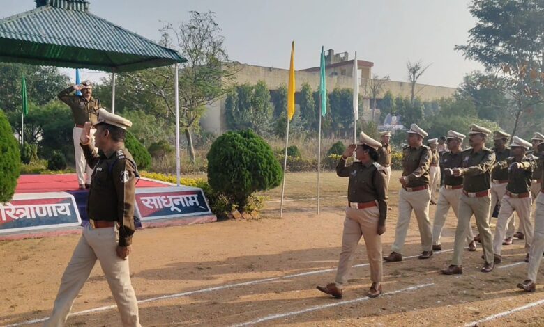 सूरजपुर। एसएसपी प्रशांत कुमार ठाकुर ने पुलिस लाइन में साप्ताहिक शुक्रवार परेड की सलामी ली और परेड का निरीक्षण भी किया। आयोजित जनरल परेड में पुलिस बल को शारीरिक और मानसिक रूप से फिट रखने के लिए सभी पुलिसकर्मियों से परेड़ करवाई गई। अच्छी वेशभूषा धारण करने वाले जवानों को पुरस्कृत किया तो वहीं खराब टर्न आउट पर कड़ी चेतावनी दी।