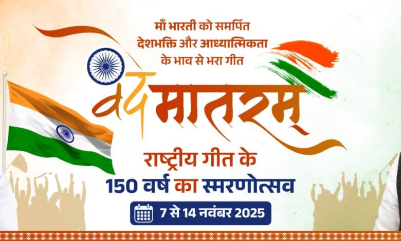 सूरजपुर। भारत सरकार संस्कृति मंत्रालय नई दिल्ली के आदेशानुसार वंदेमातरम की 150वीं वर्षगाठ के अवसर पर चार चरणों में ग्राम पंचायत, जनपद, जिला एवं राज्य स्तरीय कार्यक्रमों का आयोजन किया जाएगा। जिसमें कार्यक्रम का प्रथम चरण 07 से 14 नवंबर, द्वितीय चरण 19 से 26 जनवरी 2026, तृतीय चरण 07 से 15 अगस्त 2026 तथा चतुर्थ चरण का आयोजन 01 से 07 नवंबर 2026 तक किया जाएगा। उल्लेखनीय है कि प्रथम चरण अंतर्गत कार्यक्रम का शुभारंभ 07 नवंबर 2025 को प्रधानमंत्री नरेन्द्र मोदी के द्वारा किया जाएगा। इस दौरान दूरदर्शन के माध्यम से सुबह 10 बजे से 11 बजे तक राष्ट्रीय स्तर के कार्यक्रम का प्रसारण किया जाएगा। कार्यक्रम पश्चात् एक साथ ’वंदेमातरम’ का गायन किया जायेगा।